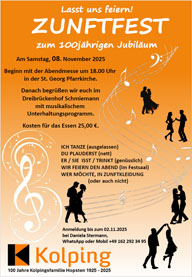 Herzliche Einladungzum Zunftfest 08.11.2025, 18:00 UhrEinladung als Datei